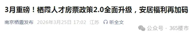 3月25日,栖霞区正式升级人才房票政策2.0,从房源扩容、时效延长到补贴升级、福利叠加,全方位加码人才安居保障,以最实举措、最大诚意,为栖霞人才托起暖心“安居梦”。