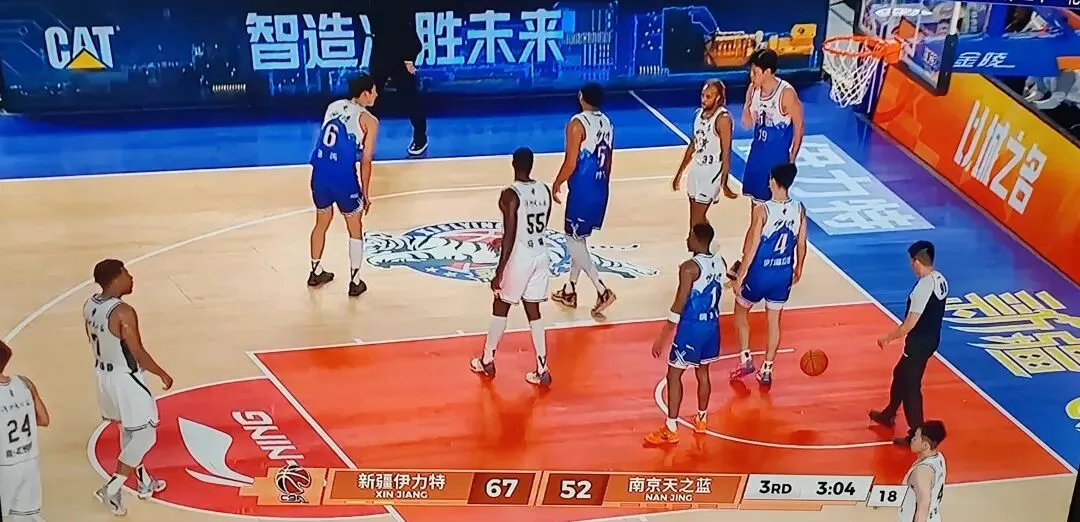 南京外援汉兹超远3分投中,比分差距追至9分,新疆队连续失误,格兰换四小一大阵容是什么操作?
