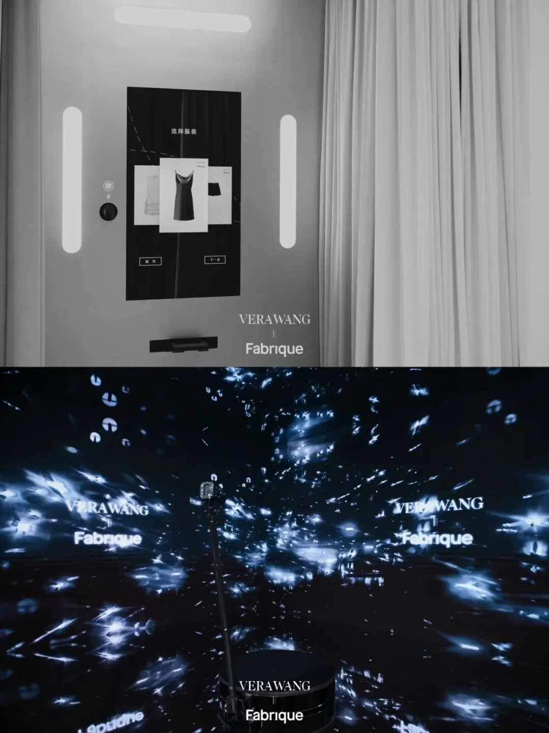 步入一层,巨型蝴蝶结装置从高定设计中解构花卉与蝴蝶结的经典符号,以极具张力的艺术形态,将女性柔与刚的双重特质具象呈现,成为全场最具记忆点的风格地标。空间更以两大互动体验延伸Vera Wang的美学语境:「Live It Like Vera」步入3D沉浸空间,定格灵感瞬间;「Dress Up Like Vera」AI试衣镜一键切换联名系列,按下快门,定格专属封面时刻。