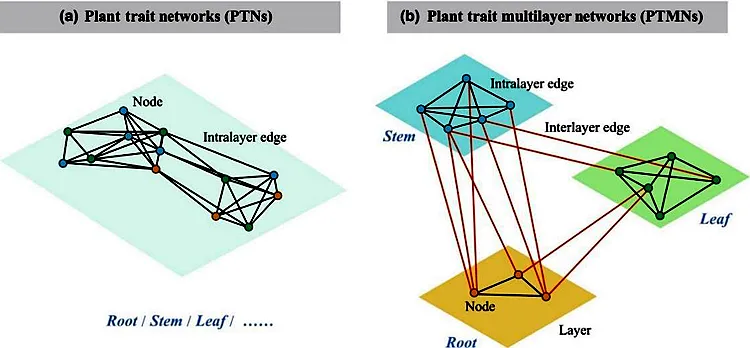 在全球气候变化加剧的宏观背景下,生物多样性与生态系统功能面临严峻挑战,深入理解植物如何通过性状调整来响应复杂多变的环境,已成为现代生态学研究的核心议题。尽管过去基于“性状经济谱”的研究揭示了植物在单一维度上的资源权衡策略,但植物作为一个高度整合的生命体,其性状往往具有多功能性且受多重选择压力驱动。传统的低维分析方法(如相关或聚类分析)传统方法,无法完全捕捉性状间复杂、多维的相互作用,因此不能用于研究多系统生态响应的协同机制。近年来兴起的植物性状网络(PTNs)框架,往往只能孤立地分析单一器官或功能系统内部的性状关联,而无法有效刻画跨器官、跨功能系统之间错综复杂的依赖关系与协同机制。这种方法论上的局限,导致我们对植物整体适应策略的理解始终存在盲区。