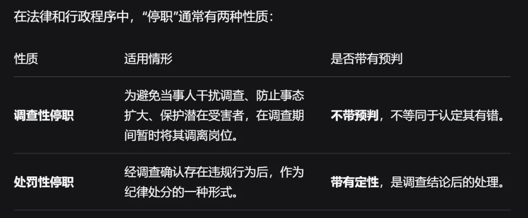 进一步讲,这又是官方认知和公众认知的一次“错位”。符合公众认知的程序应该是“接到反映-调查核实-采取措施(包括停职在内)”。而这里的顺序是“接到反映-立即停职-同步调查”。虽然调查性停职在法律上允许,但当停职与调查同步启动时,公众很难区分这是调查措施还是处罚结果。可以说正是这一原因导致了媒体可能的误读。如果通报的措辞再严谨一些,精准一些,或许就能避免教师被“舆论审判”的发生。