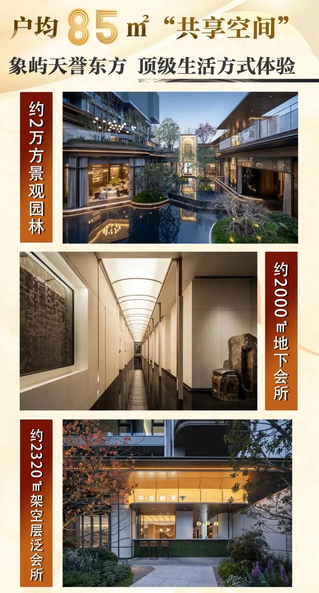 豪宅的价值,一半在户内,一半在户外。天誉东方在公共空间的投入上,简直可以用“挥霍”来形容。项目仅283户,但却拥有约2万方景观园林、约2000㎡地下会所、约2320㎡架空层泛会所