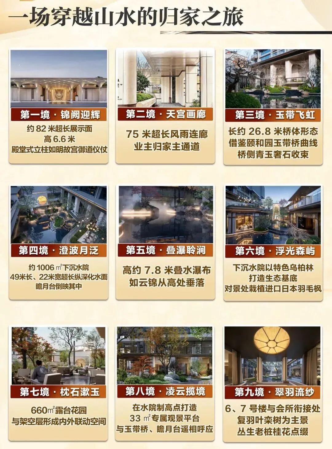 还有660㎡的露台花园(第七境)、33㎡的观景会客厅(第八境)、以及点缀着单株10万元丛生老桩桂花的森氧花园(第九境)……九境连环,移步异景每一次归家,都是一场穿越山水的旅行