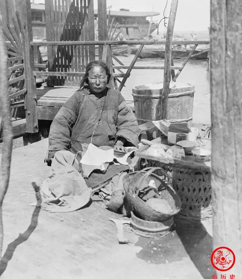 照片里这位蹲在桥头的缝补衣妇,布摞一旁,手里针线不停,桌上还堆着两只破碗,这买卖多是给急用的人补个衣脚,缝缝补补过一天,冷天碰上没生意只能靠一口热茶顶着,街坊看见也没谁笑话,都知道是过命活。
