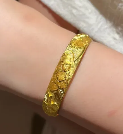 我是南京人,最近雨水多,周末逛德基那天,鞋子都被雨打湿了,心情恹恹的,脑袋还回响着“囤黄金”四个字。路过金店,橱窗里那种暖暖的金色灯光一照,我整个人就破功了。进去先摸了摸柜台上的足金手镯,软软糯糯的,像把焦糖捏在手心里,店员说这只36克,我戴上那一瞬间,真的有被狠狠安慰到,手腕看起来亮了一个度,连雨天的郁闷都被烫走一点。旁边还有一条细细的K金链,设计很干净,叠戴起来轻盈,我照镜子笑得有点傻。你们懂吧,那种“今天不买回去肯定睡不着”的感觉。