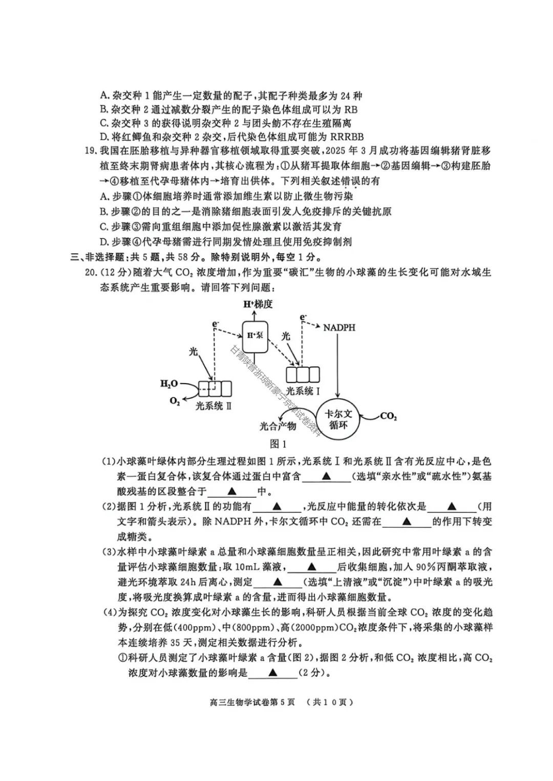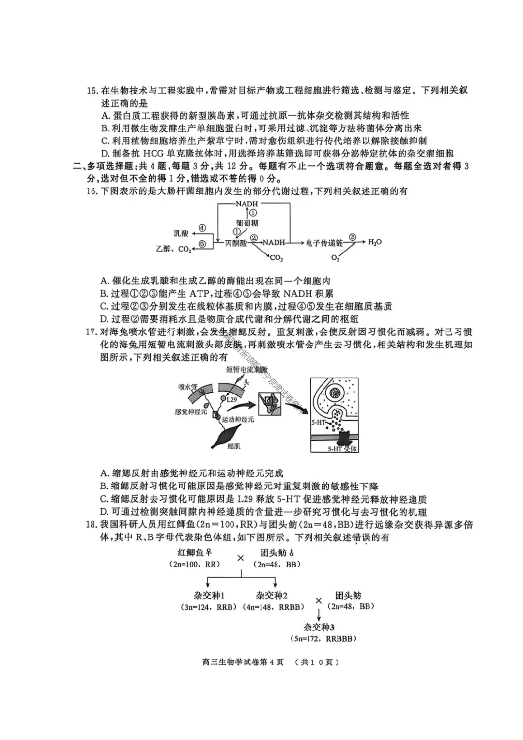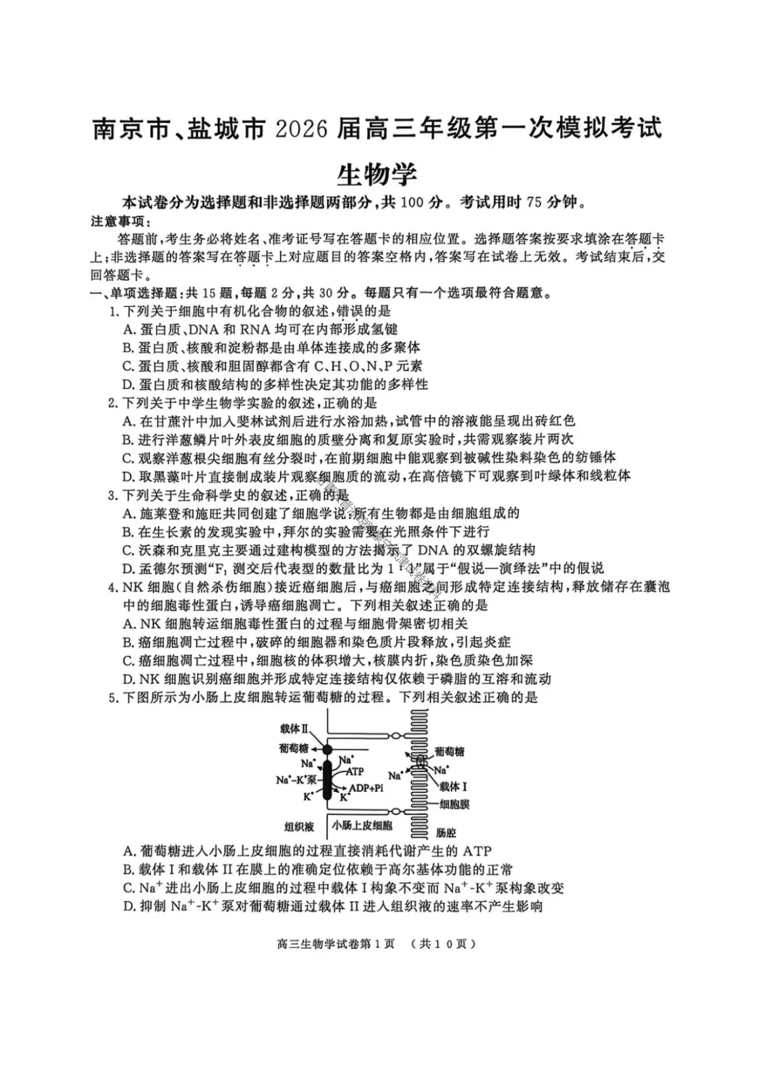 >【生物学】南京市、盐城市2026届高三年级第一次模拟考试试题+答案