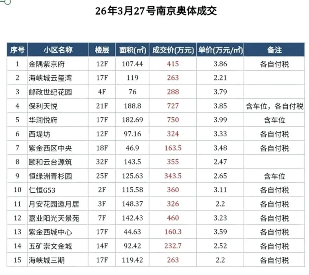 2026年3月27日,南京建邺区存量房成交数据统计