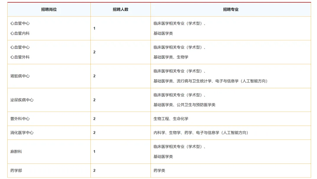 博士后招聘岗位为科研博士后,主要从事相关学科的基础研究或临床研究工作。原则上按照当年岗位需求招聘,也可以根据学科建设实际情况增加或者调整博士后招聘计划。