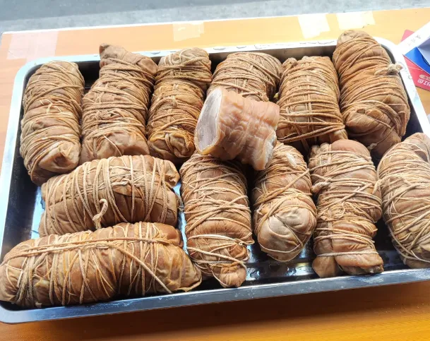 要是只挑一道最有记忆点的,我会留给汤沟捆蹄。它做法不花哨,把猪蹄去骨整形,用盐、酱、香料反复腌透,再捆紧慢卤。火不能急,急了就散。卤到皮脂发亮,筷子一夹还带点韧,切片上桌,凉着吃也稳。