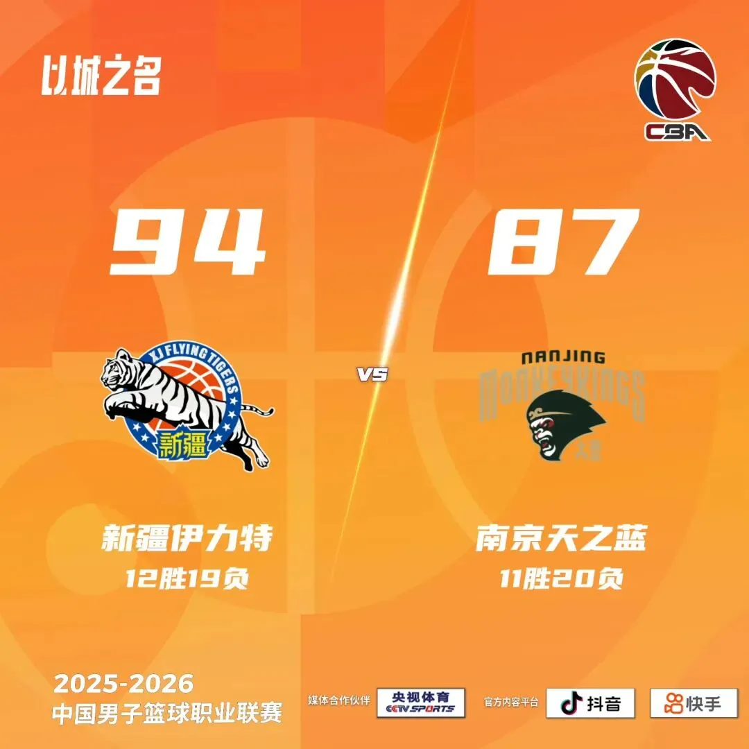 2025-26赛季CBA联赛常规赛第31轮,球队远赴乌鲁木齐,客场挑战新疆伊力特队。上半场,两队打得是你来我往,互有胜负,比分交替上升;第三节,局势风云突变,伊力福拉提、劳森内外开花,带动了新疆全队的进攻,单节得到32分,以12分的优势进入第四节。末节决胜,球队在帕克的策动下果断提速,一度将分差追至4分,只可惜今天球队三分手感不再,最终只得遗憾告负。