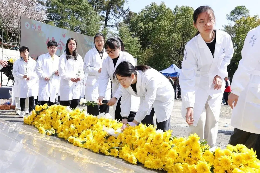 梨花风起正清明,游子寻春半出城。有些人离去了,却永远活在生命的延续里。“捐友”老师们在生命的尽头,毅然选择奉献自己,架起医学进步的阶梯。每逢清明等重要时节,我校都会组织师生志愿者以多种形式开展缅怀“捐友”活动。经过多年的实践与探索,学校已将“捐友”、“感恩”、“奉献”这三个关键词深度融入医学人文教育与课程思政建设中。在学校各部门的支持下,人体解剖学系及党支部开展了一系列以服务和感恩“捐友”为主题的活动,为医学生搭建了良好的医学人文交流平台。通过感恩教育,激励未来的医者敬畏生命、尊重生命,在未来的行医路上坚守救死扶伤的初心。