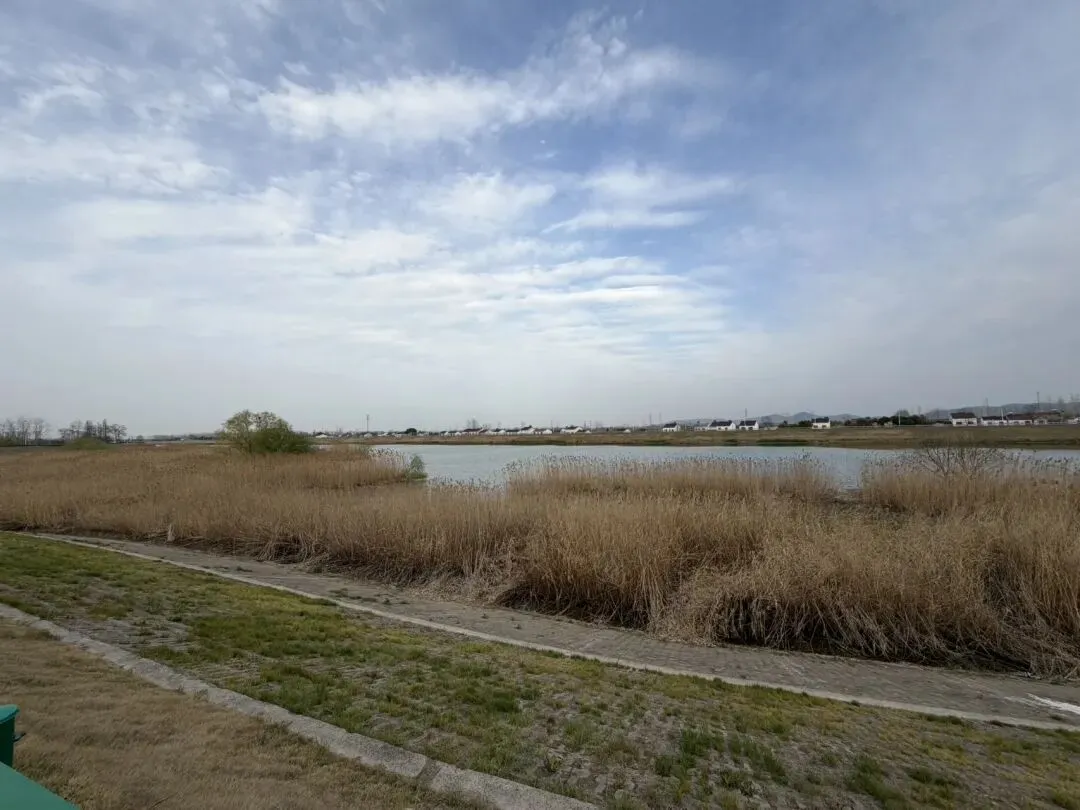 靠着河岸有些滩涂,长满了芦苇,但是新生芦苇还没长出来,依旧黄黄苍苍!