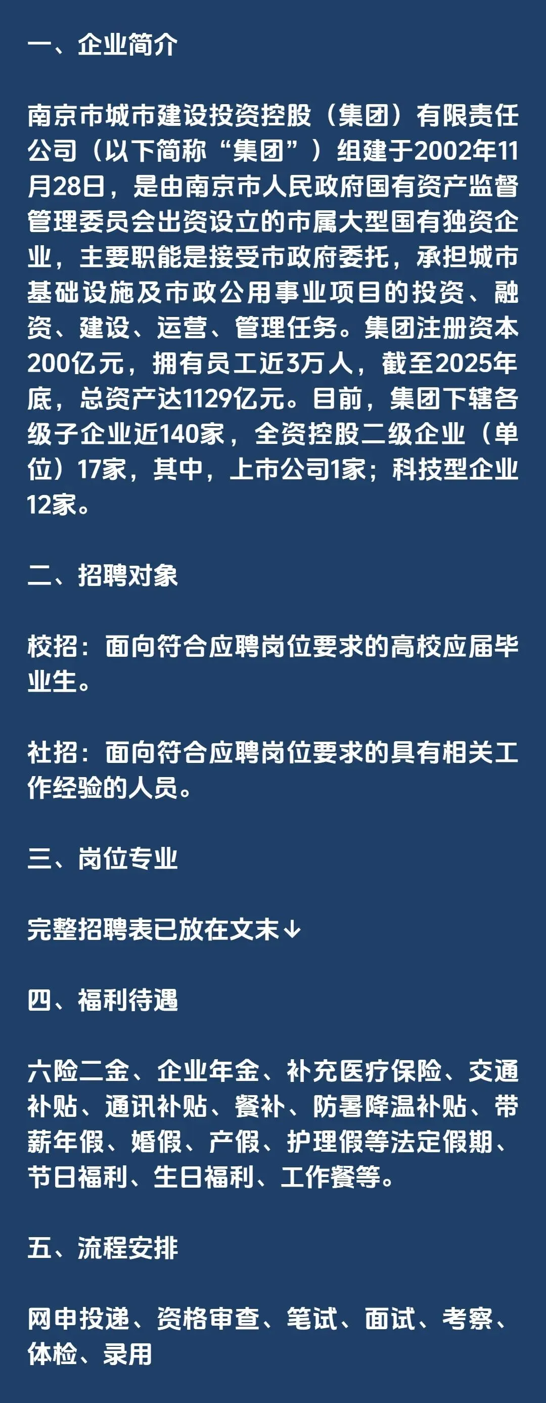刚刚,南京市城市建设投资控股集团,2026年校招+社招123人!