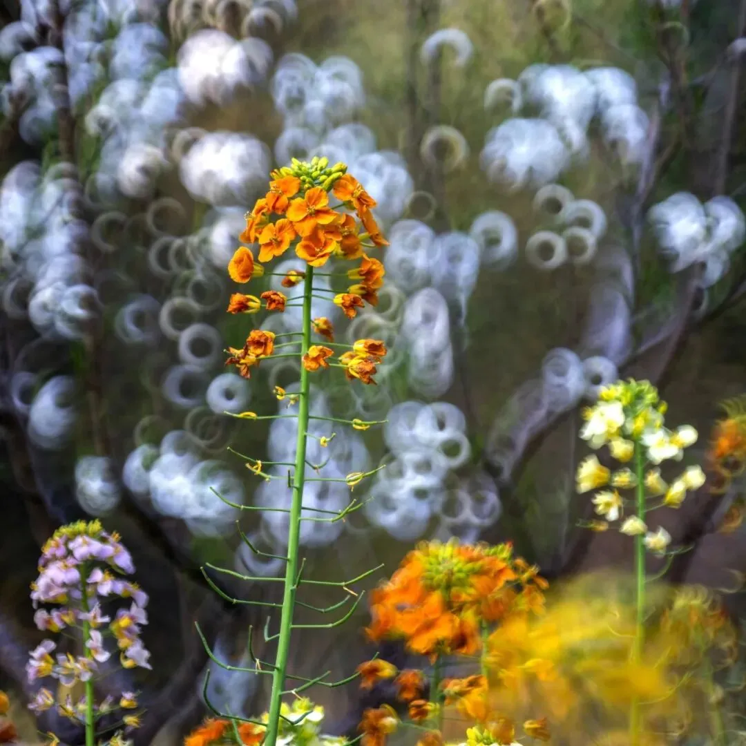 这片花田藏在公园景致中,粉、紫、白、橙与金黄交织,风动花摇,格外灵动。据悉,彩色油菜花并非天然,是科研团队通过远缘杂交选育的珍品,颜值与实用兼具。