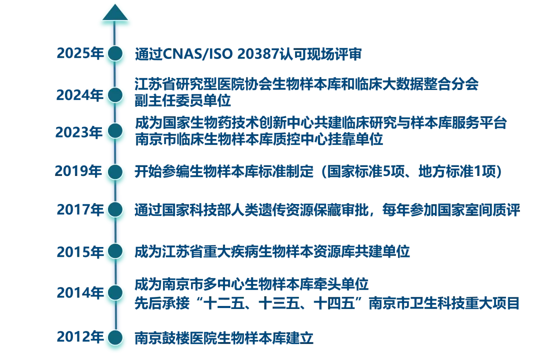 南京鼓楼医院生物样本库始建于2012年,建立之初即承担南京市多中心生物样本库牵头单位至今;2015年成为江苏省重大疾病生物样本资源库共建单位;2017年通过国家科技部人类遗传资源保藏行政审批;2023年成为首届南京市临床生物样本库质量控制中心挂靠单位,并参与国家生物药技术创新中心临床研究与样本库服务平台共建。迄今共参编GB/T 37864(ISO 20387)在内的国家标准5项,地方标准1项。样本库占地面积1000平米,存储容量120万份,设置样本处理、存储、质控等多个功能区域。现有在职职工8人,第三方聘用2人。其中正高级职称1人,博士2人,硕士4人。所有在职人员均获生物样本库上岗资质,CNAS(ISO 20387)内审员和GCP培训证书。