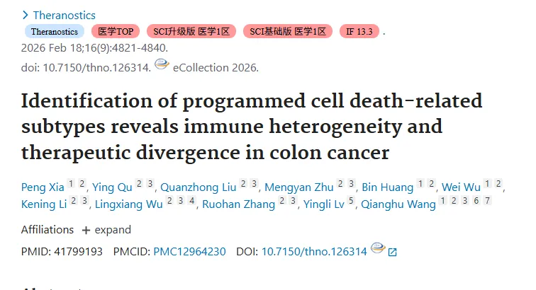 结肠腺癌(COAD)治疗耐药问题突出,现有分子亚型未充分整合程序性细胞死亡(PCD)通路与肿瘤微环境(TME),而 PCD 是治疗反应关键调控因子,其在 COAD 中的临床作用尚不明确,亟需新型分型指导精准治疗。