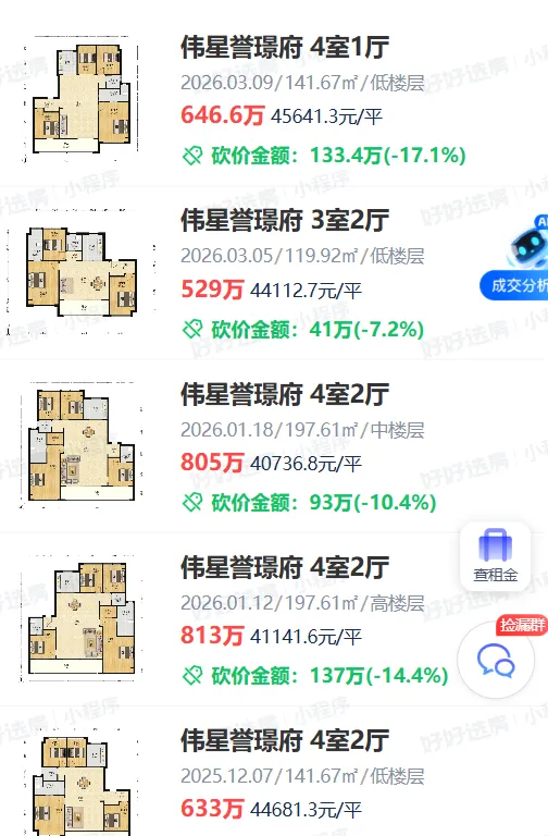 品质比较突出的以伟星誉璟府为代表,成交价一直在4万/㎡以上,最新则卖到了4.5万/㎡;近期金基望樾府还成交一套234㎡房源,成交单价突破5万/㎡,成交总价1180万,刷新板块二手房成交纪录!