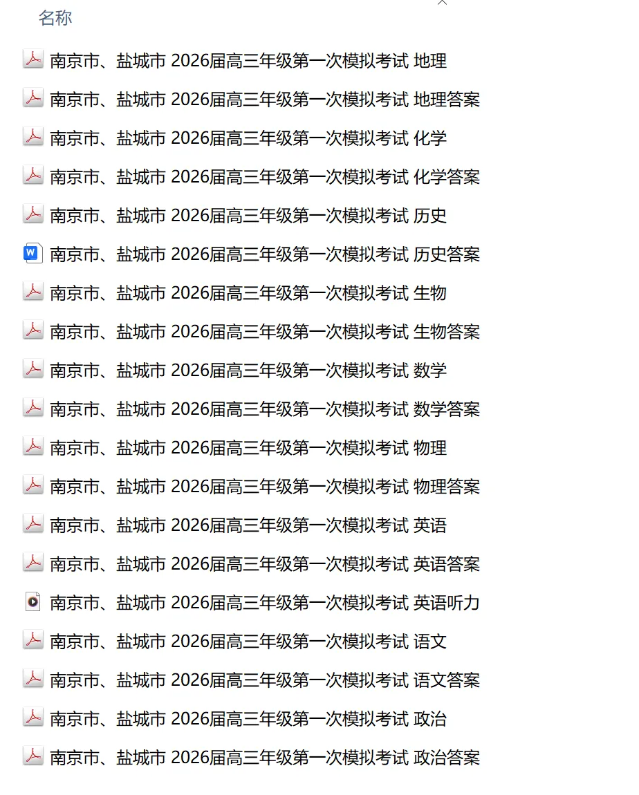 【江苏卷】江苏省南京市、盐城市 2026届高三年级第一次模拟考试
