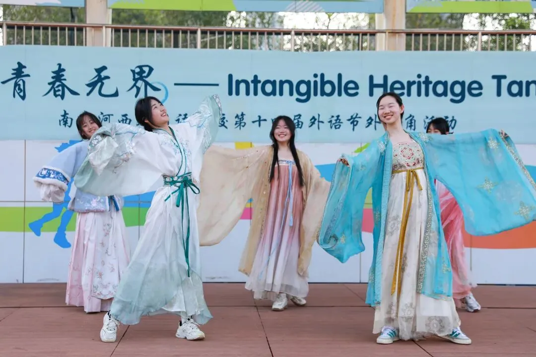 “用外语讲好中国故事的前提,是我们要先真正读懂中国故事。筹备活动期间,我们首先查阅了非遗背后的文化故事,再去做表达。只有先自己真正理解了、认同了、自信了,讲出来的故事,才会有打动人心的力量。”外语角活动现场,河外学子以英语为传播媒介,以体验为实践路径,打破了“非遗是老传统”“外语即西方”的刻板印象,在跨文化语境中完成了对非遗的青春表达,也让中华优秀传统文化在河外少年的讲述中,拥有了走向世界的全新样貌。