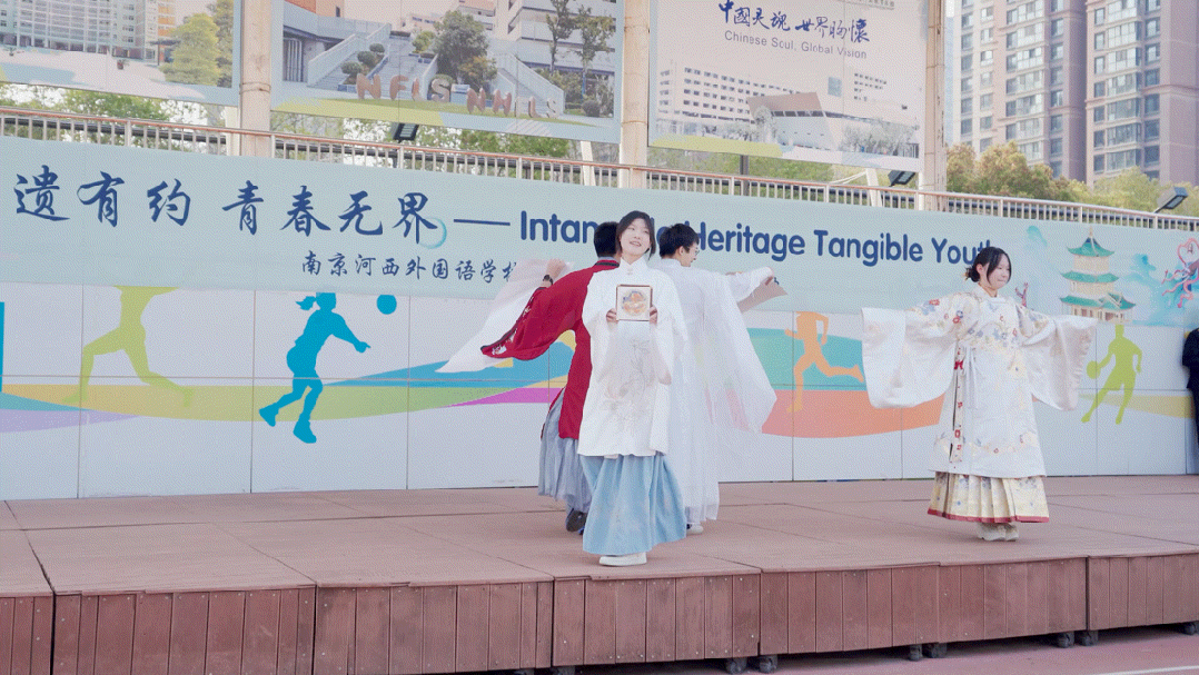 龙泉青瓷的温润、宣纸的柔韧、书法的风骨、珠算的智慧、南京云锦的华美,在河外学子的英文讲解与优雅展示中一一精彩呈现。