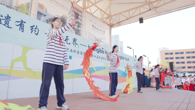 你看,河外小萌娃们,用清亮的童音、大方的姿态,用英语介绍非遗作品,邀请大家进行非遗手工制作。对他们而言,非遗传承从来不是宏大遥远的叙事,而是开口介绍时,眼里闪着光的那份小小的骄傲与自信。