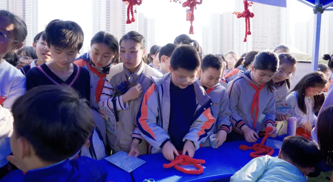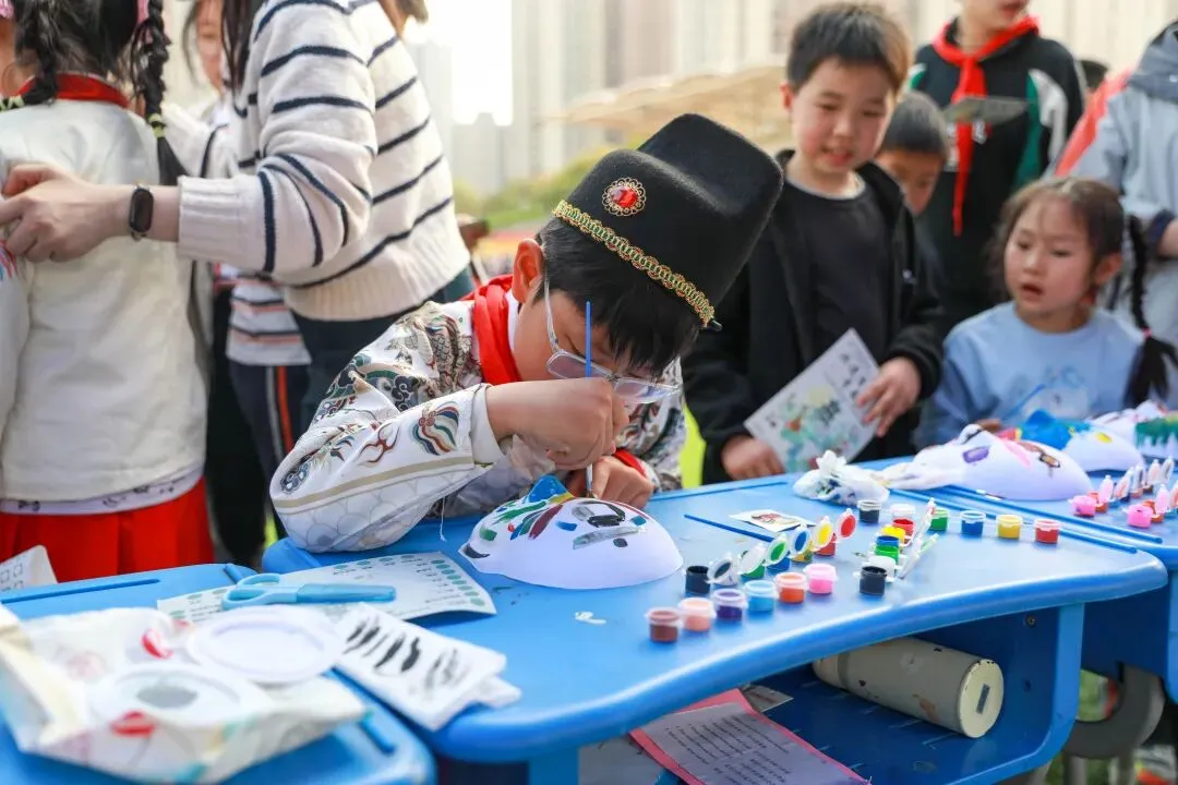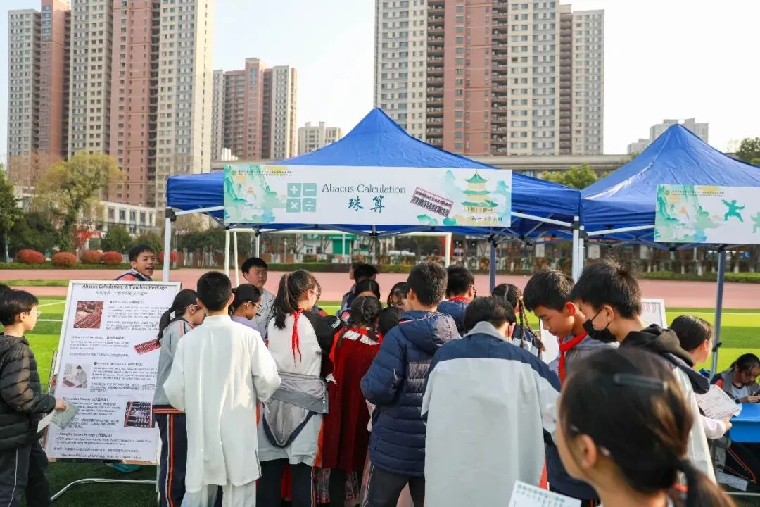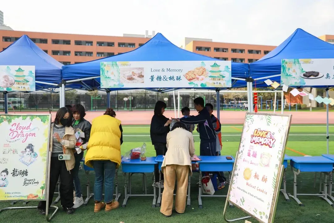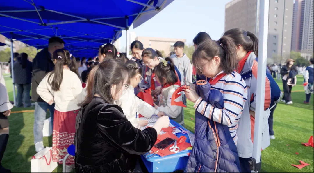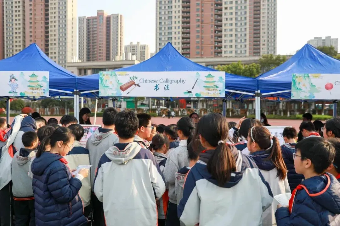 与常见的“听讲式”文化活动不同,本次外语角活动,南京河西外国语学校以“非遗游园会”为主题,采用全学段覆盖、游戏化互动的参与模式,将操场变身为一座“非遗体验乐园”。
