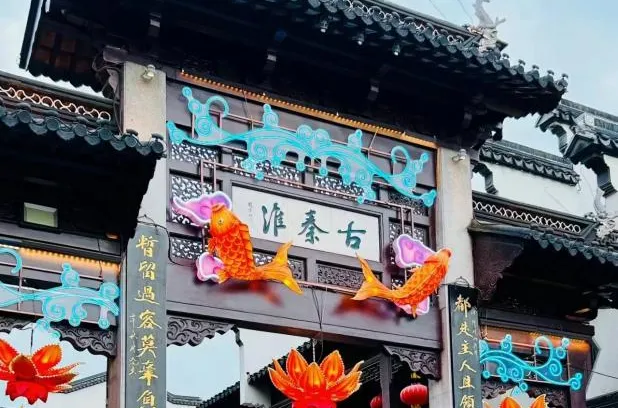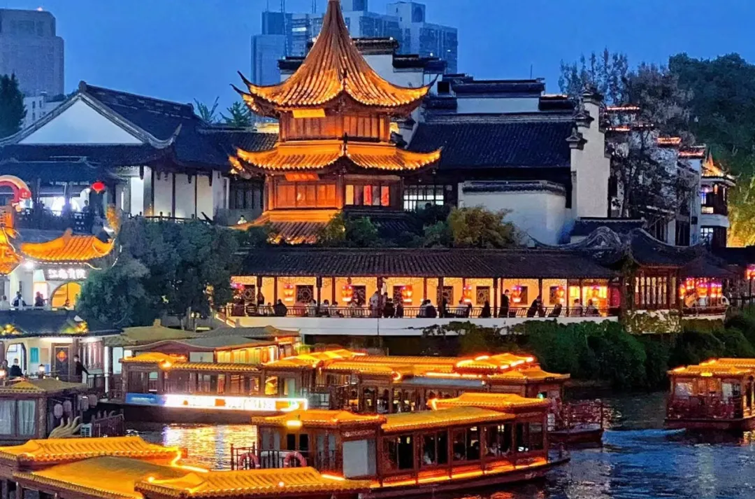 十里秦淮灯火灿,楼台亭谢绕河堤