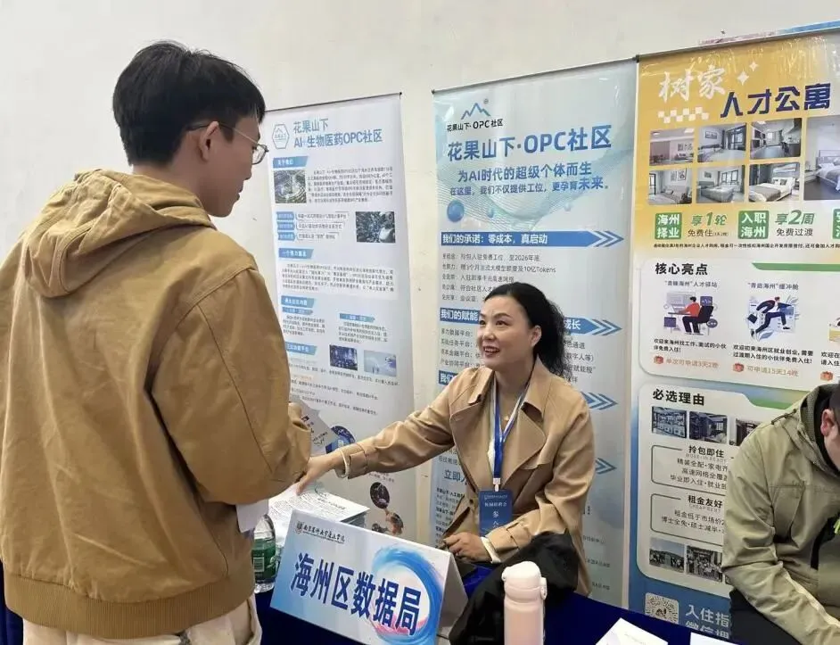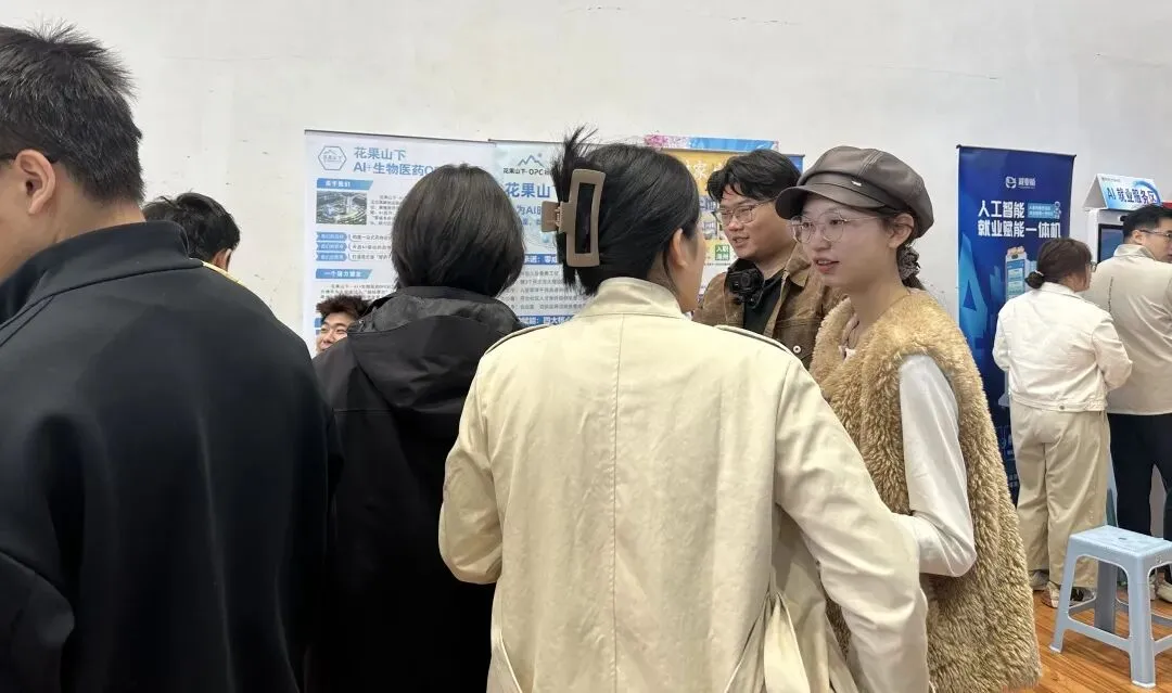 3月28日,在南京医科大学康达学院春季校园招聘会现场,花果山下·人工智能OPC社区的展位前,来自不同专业的学子们展现出了对AI技术的浓厚兴趣。