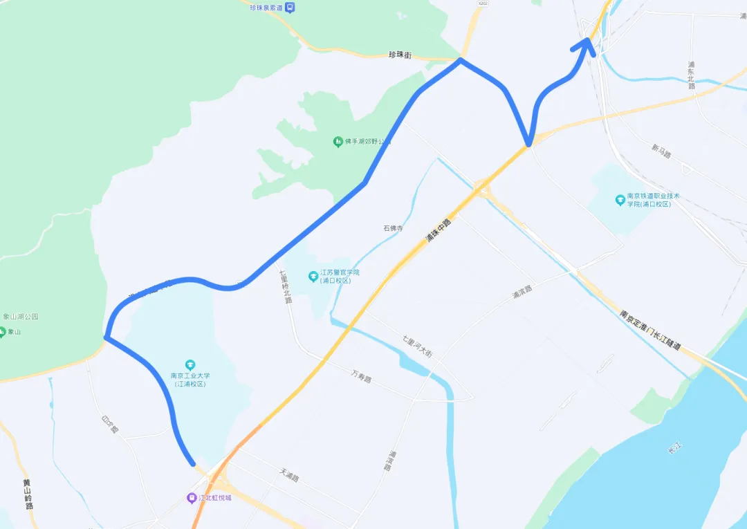 方案1:浦口大道—沿山大道—珍珠街—江北大道