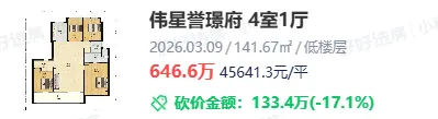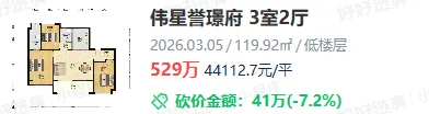 今年,南部新城二手房在同全市对比中,显得异常坚挺。2026年3月南部新城成交价普遍在3万/㎡以上,伟星誉璟府交付后持续4万+/㎡成交,3月9日再次成交了一套4.56万/㎡的房源,可以说是抗跌最强的区域。