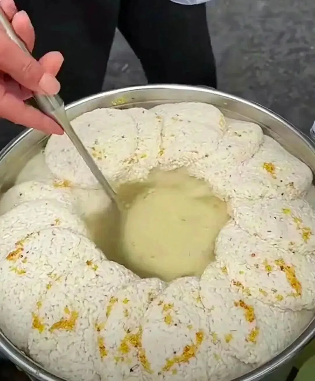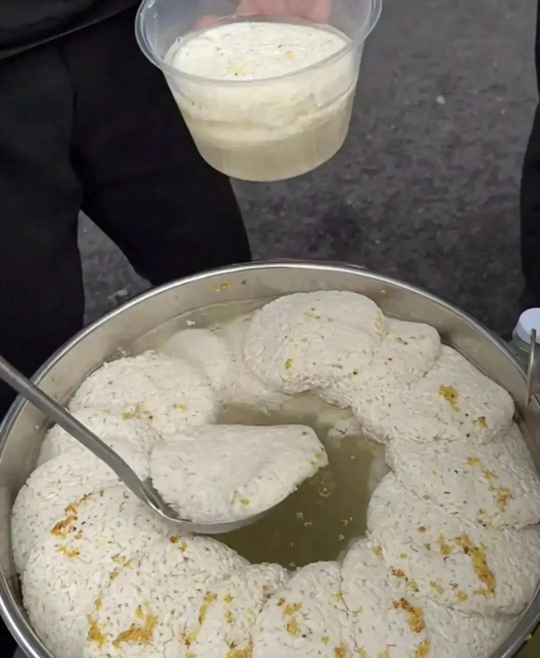 我站在摊前,脑袋里全是问号:这到底是啥?说它是米饼吧,又带着水润润的模样,不像平时吃的干干脆脆的米饼;说它是南京的糖水,可又装在盒子里,一个个规规矩矩地挤着,哪有糖水是这般模样的?再仔细看,里面还撒着细碎的桂花,香气清幽,光闻着就让人心里舒坦。