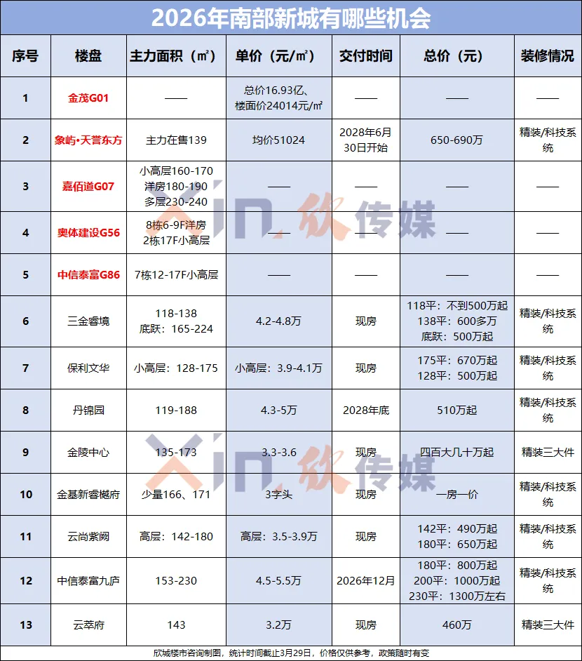 有业内人士分析指出:“南部新城的强引力,主要得益于两个方面:一是规划的强兑现度;另一个就是住宅供需关系的稳健性,目前主力在售的仅有丹锦园、金茂府等少量项目。”截至目前,南部新城目前已有9个项目在售,以及4幅已拍地块储备,总价约460-1300万不等。
