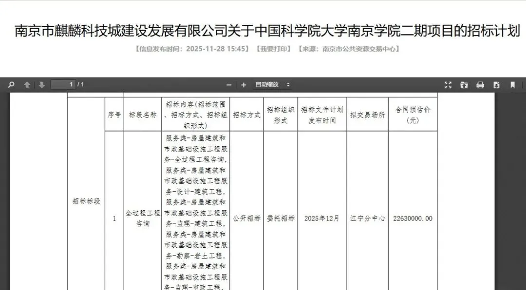 2025年11月,官方发布了二期项目的招标计划,标志着项目进入实质性推进阶段。该项目已被列为《南京市2026年经济社会发展重大项目》,预计将于今年内启动建设。并且按照该地块的《投资发展监管协议》,须在拿地后30日内开工,15个月内实现结构封顶,24个月内竣工。