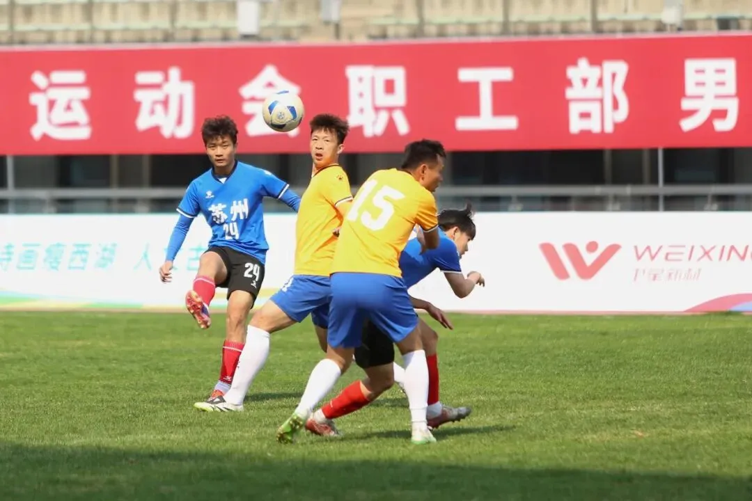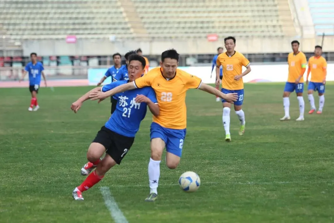 江苏省第二十一届运动会职工部男子足球赛今天迎来重头戏,赛前不被看好的苏州队“令人意外地”闯入半决赛,挑战老大哥南京队。