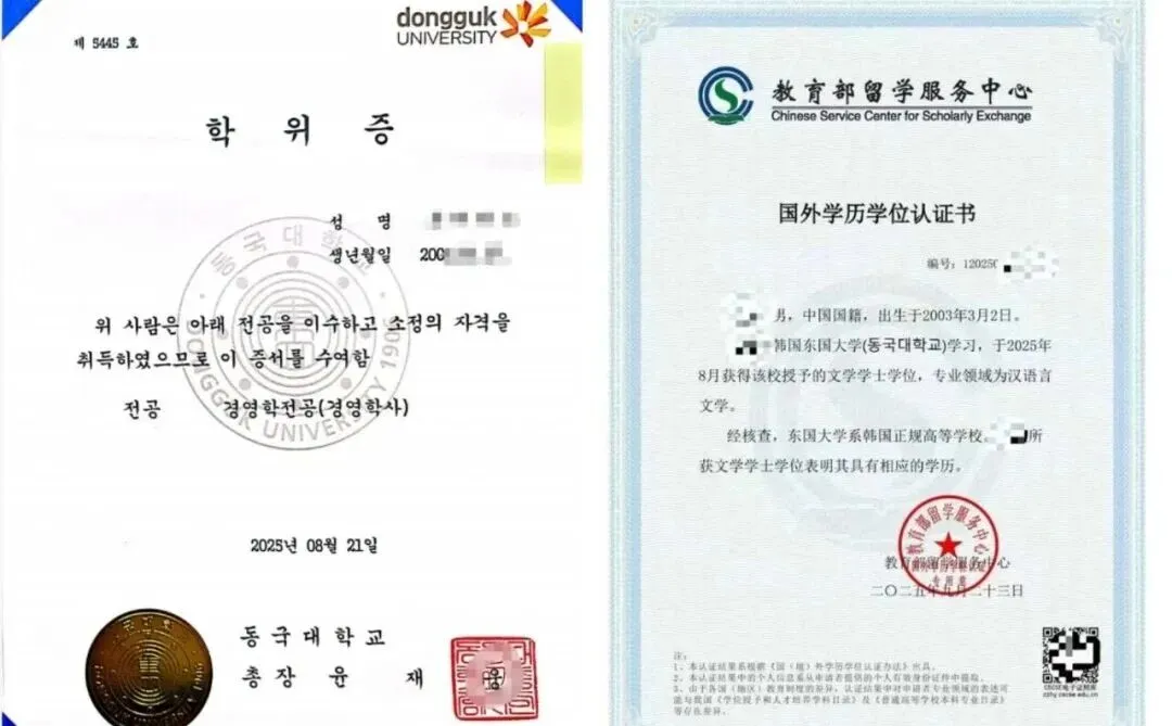 韩国学位证书及认证模版