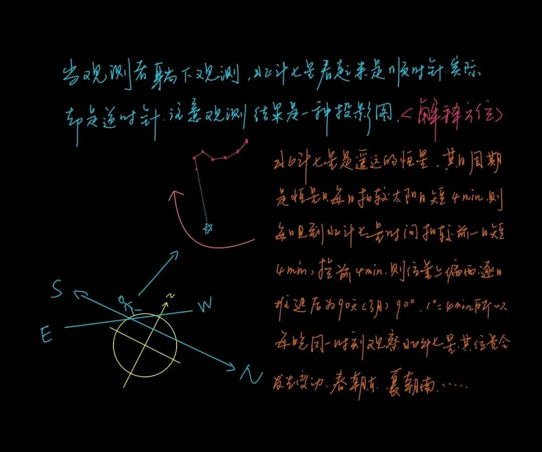 这可以说是恒星日与太阳日差别引申出的现象,类似的还有:古人观察北斗七星斗柄的位置,并根据其位置确定一年四季,指导农业生产,得出斗柄东指,天下皆春(春分日前后);斗柄南指,天下皆夏;斗柄西指,天下皆秋;斗柄北指,天下皆冬的结论。
