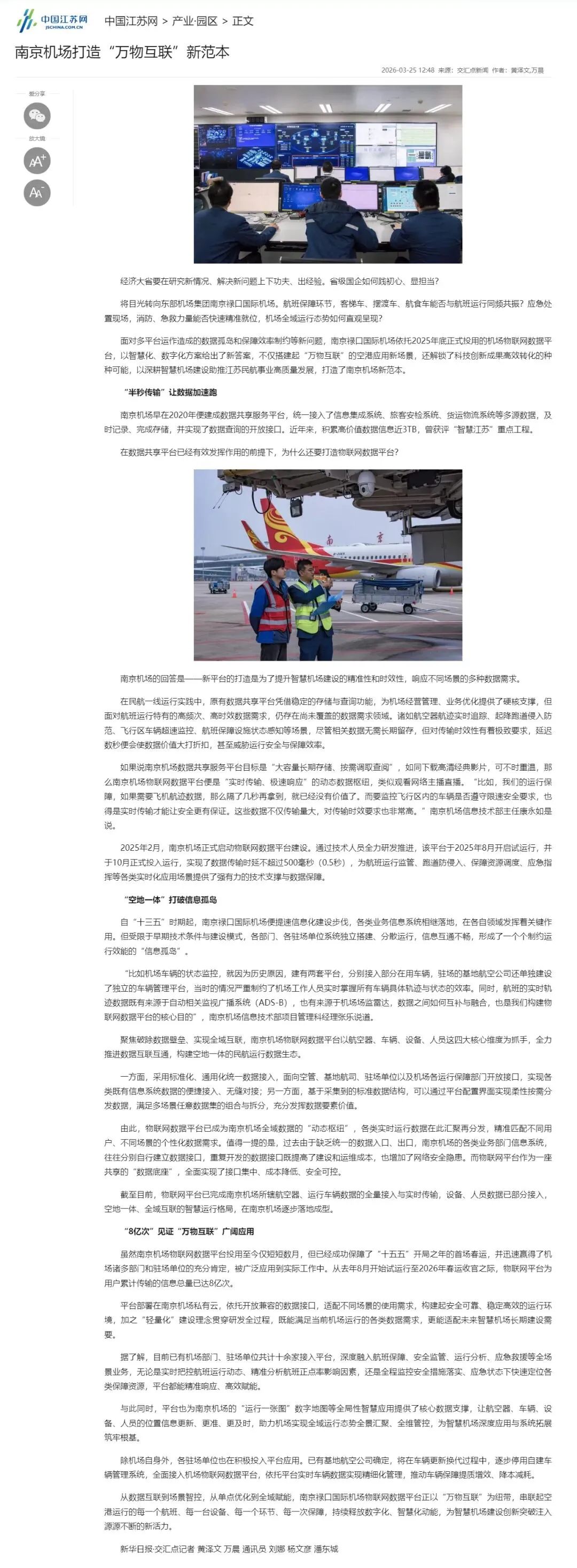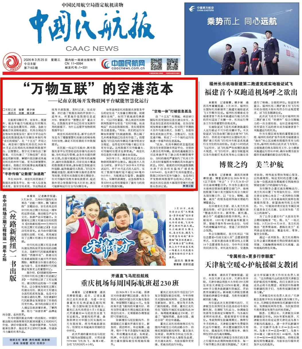 近日,《中国民航报》头版头条刊发报道,深度聚焦南京禄口国际机场物联网数据平台的智慧实践。