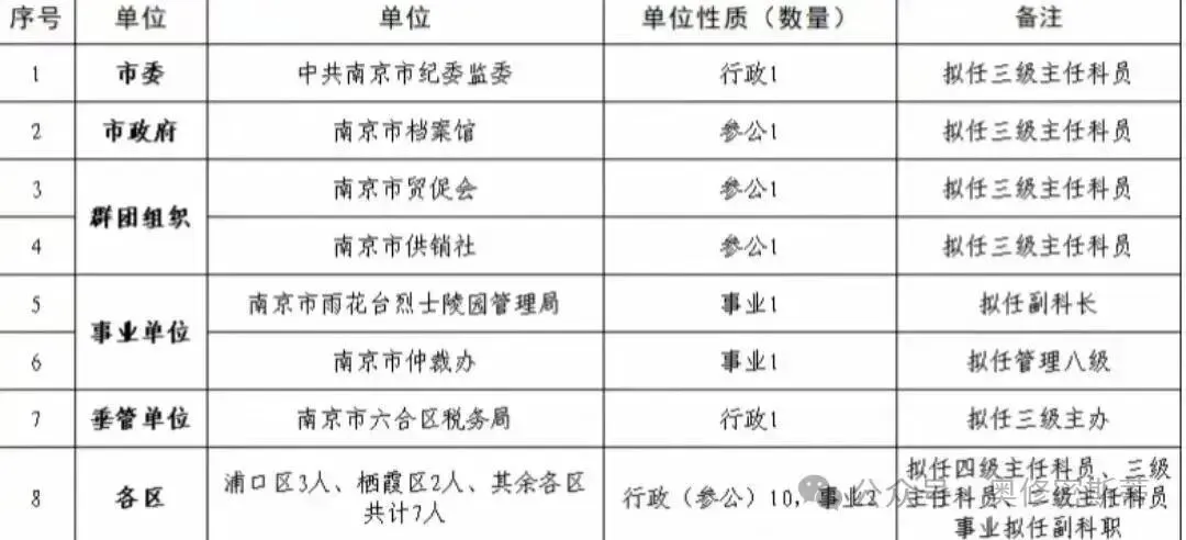 ③营以下(含技术9级及以上):南京市营职及以下转业军官人数占大多数,安置单位几乎覆盖省市区各级机关单位,详细的安置岗位表理论上无参考意义。