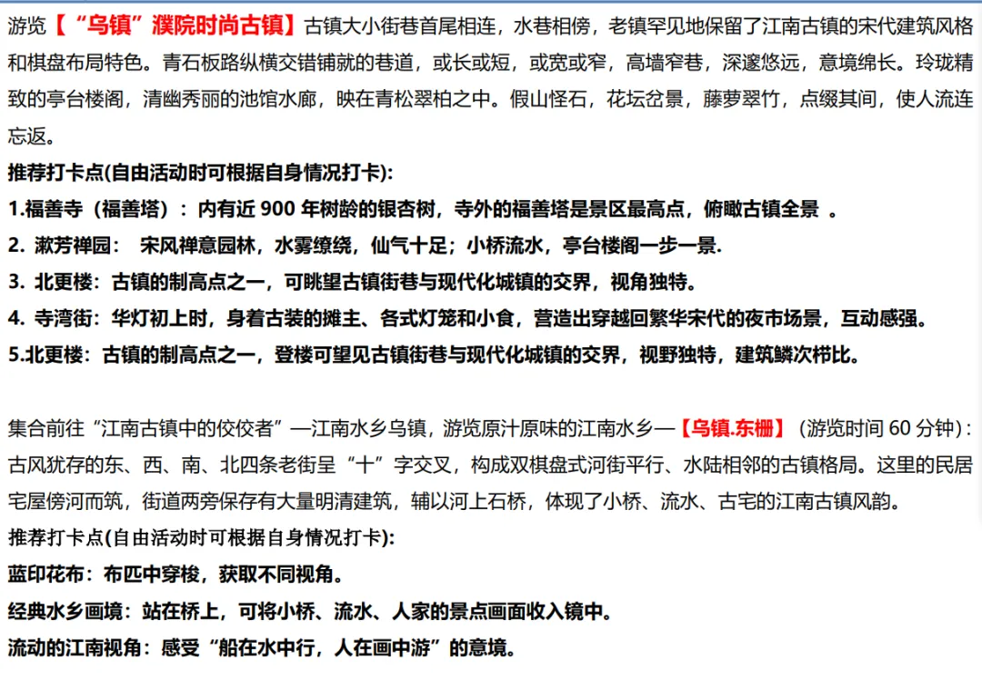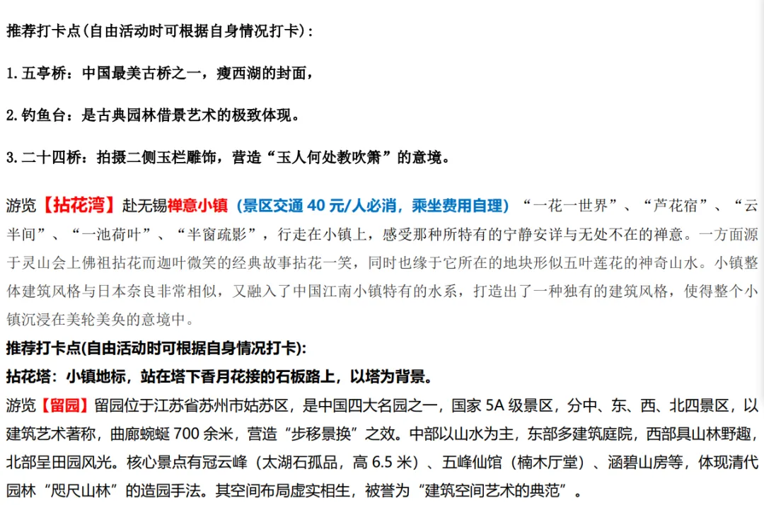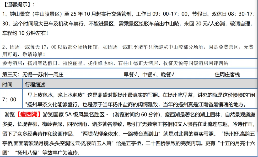 特别说明!!—江南行程里会有景区内的小交通需要自理,因为每个导游推荐的不一样,所以没有办法确认价格,大约是每人200到300之间,按照实际需要支付就好!!请大家知晓!!