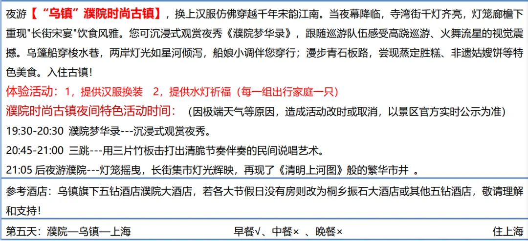 入住大升级,升级一晚携程五钻,其他都是携程四钻!全程无购物!!全程无购物,全程无购物!!行程很优质,特别加入——特别出名的濮院时尚古镇~