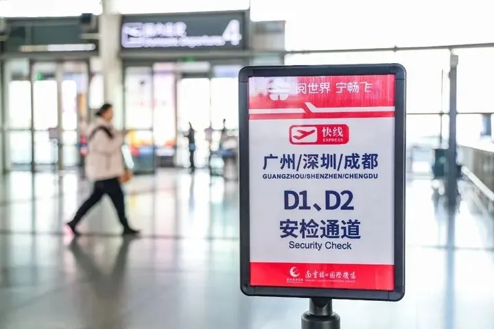 为保障快线高品质运行,南京禄口国际机场通过资源整合和流程再造,统一规划双航站楼专属标识、设置专属值机区、专用安检通道,配置近机位及行李提取转盘,大幅减少排队时间与步行距离,无托运行李旅客起飞前15分钟抵达登机口即可完成“一刻”登机。