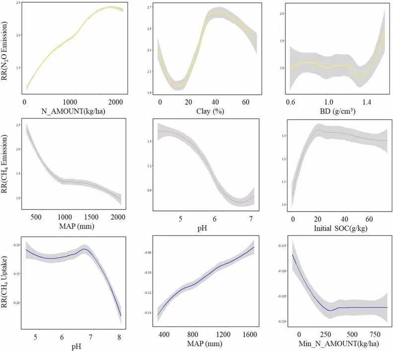 识别导致区域间温室气体排放差异的关键调节因子,对于制定因地制宜的气候变化缓解策略至关重要。本研究通过引入机器学习算法处理复杂的非线性生态数据,克服了传统元分析回归模型在处理高维数据时的局限性。研究结果不仅揭示了草地管理的全球模式,还展示了土壤-气候耦合机制如何决定温室气体的响应,为未来的可持续草地管理和精确的碳减排政策提供了数据支撑与方法学框架。