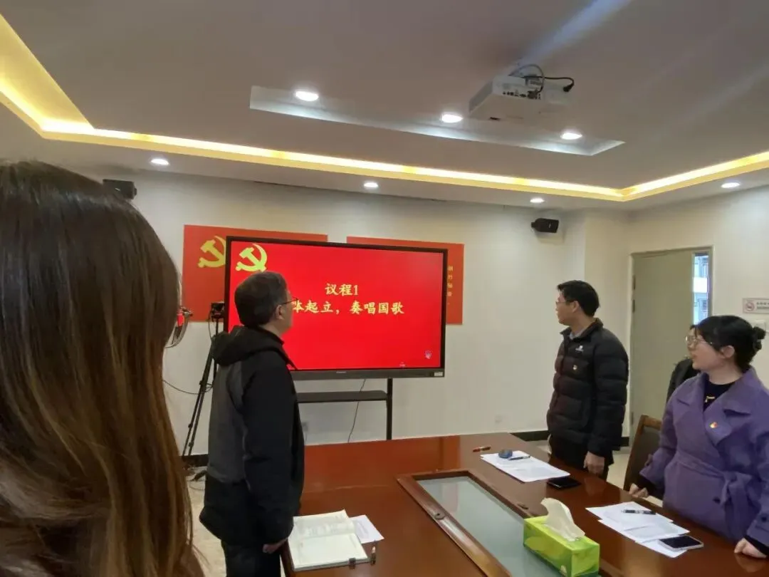 活动伊始,全体党员同志起立,齐唱中华人民共和国国歌。激昂的旋律回荡在会场,让每一位党员都深受洗礼,进一步增强了责任感与使命感,为本次会议奠定了庄重严肃的基调。