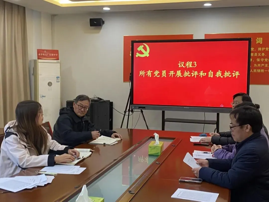为深入学习贯彻党的系列精神,进一步规范党内政治生活,南京市大厂高级中学第一党支部于2026年3月25日召开组织生活会暨民主评议党员大会。全体党员同志以严肃认真的态度,共同回顾支部工作、开展党性分析、凝聚奋进力量。