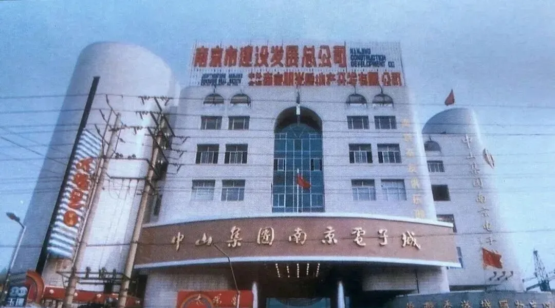 图中带玻璃门头的就是南京电子城,橙色LOGO加一溜金字,路口拉着大红横幅,小时候跟着爸妈进电子城买VCD,货架边全是年轻人,满胡同都是聊最新音响电视的声音,爸还在挑卡带机,走出门还能拿根热狗肠当奖励,现在手机平板一统天下,再没有那种第一次摸到遥控器的兴奋劲儿了。