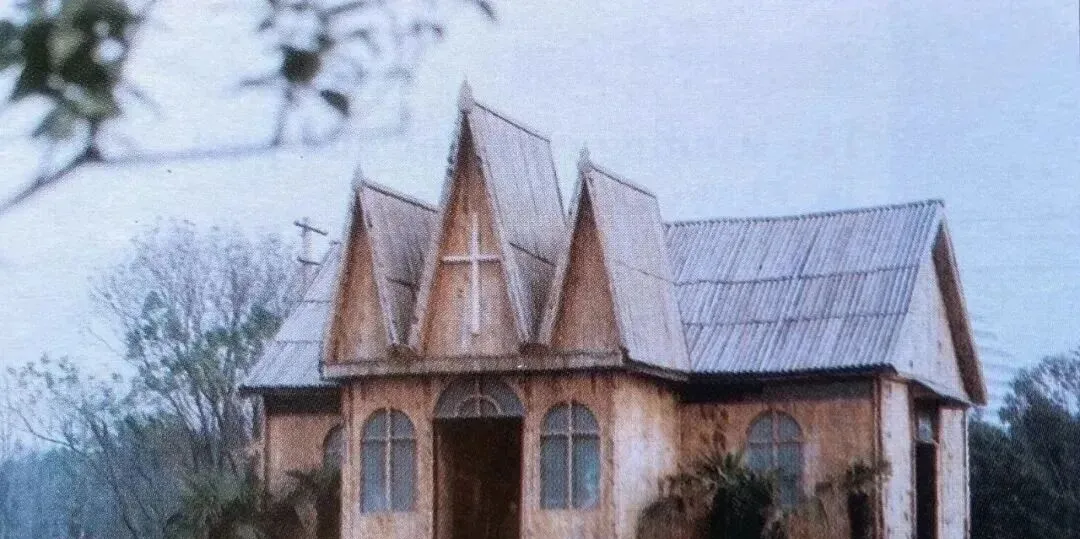 木头的小教堂建筑,有点西式童话感,屋顶一排三角,两侧玻璃窗总是亮着灯,小时候爱趴在外墙看一会儿,觉得这里神秘极了,周围的树影被灯光照得很美。
