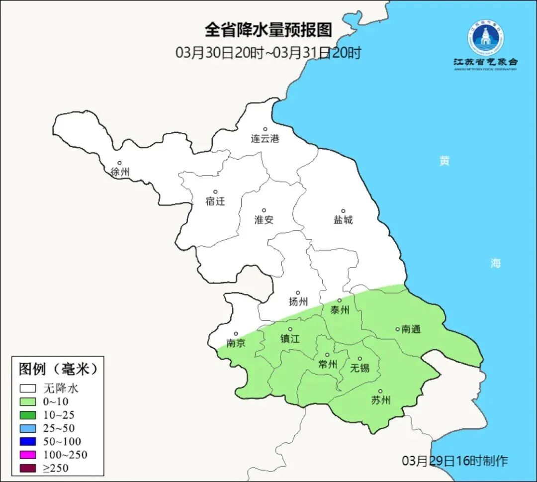 30日江苏有一次降水过程