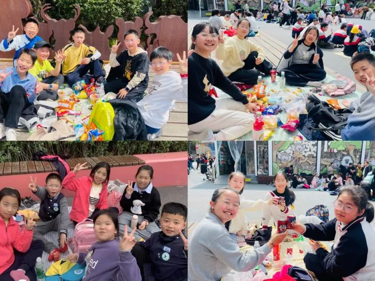 中午时分,同学们在指定区域整齐铺开地垫,围坐在一起共享午餐。大家相互分享美食、友好交换食物,欢声笑语在阳光下格外清脆响亮。用餐结束后,孩子们自觉拿出垃圾袋,主动将地面收拾得整洁干净,真正做到了文明出游、“片纸不留”,展现出月苑一小学子良好的文明素养与行为习惯。