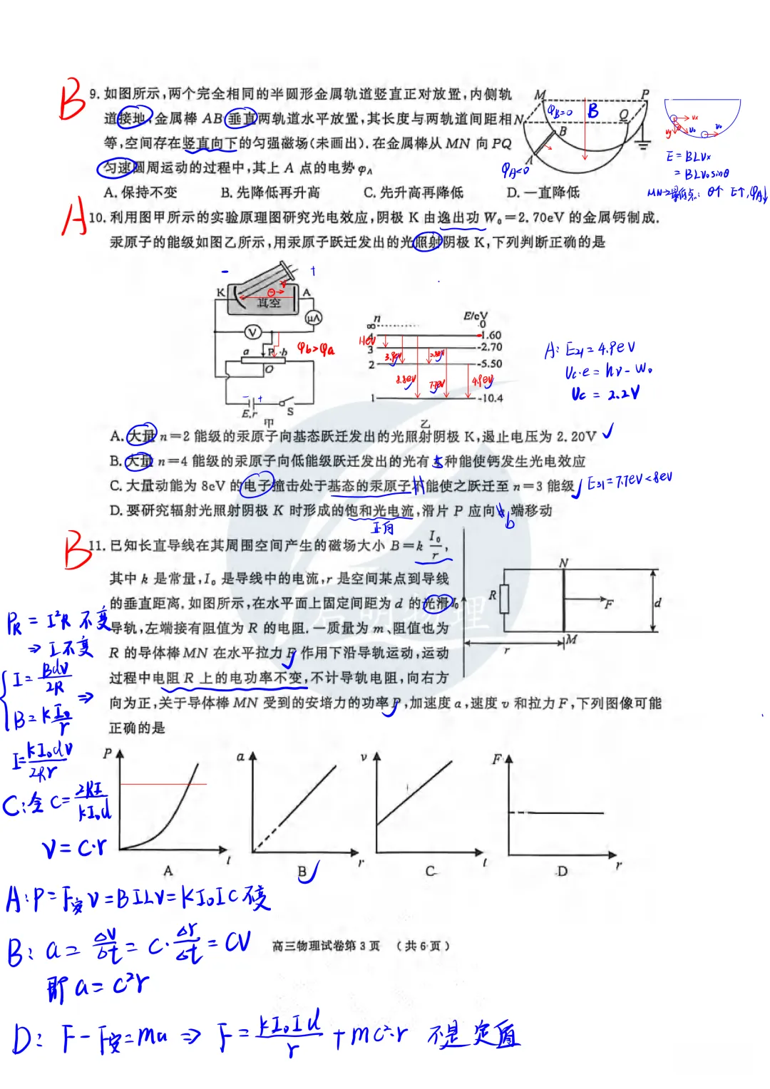 【高三物理】26年南京盐城高三一模手写解析
