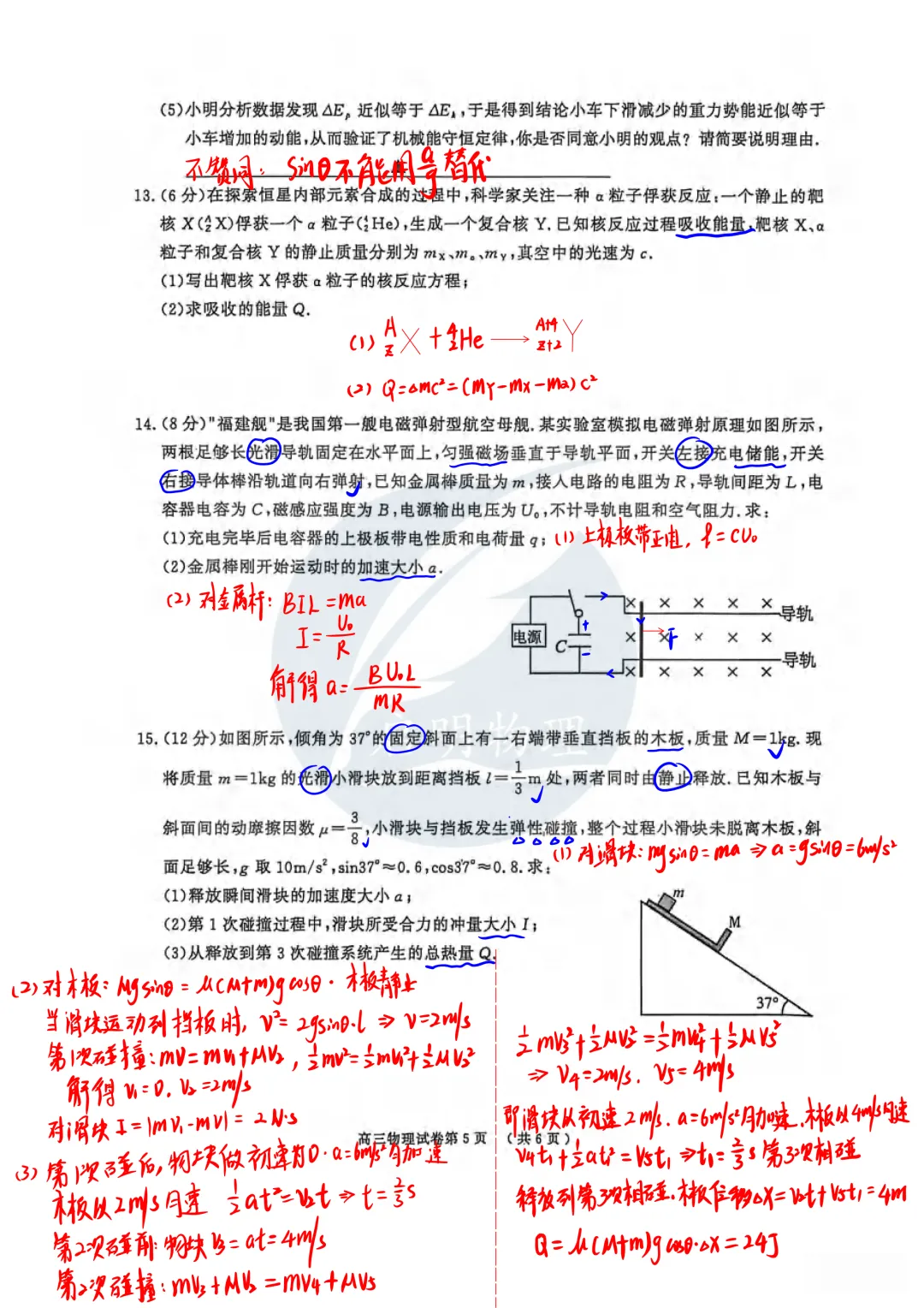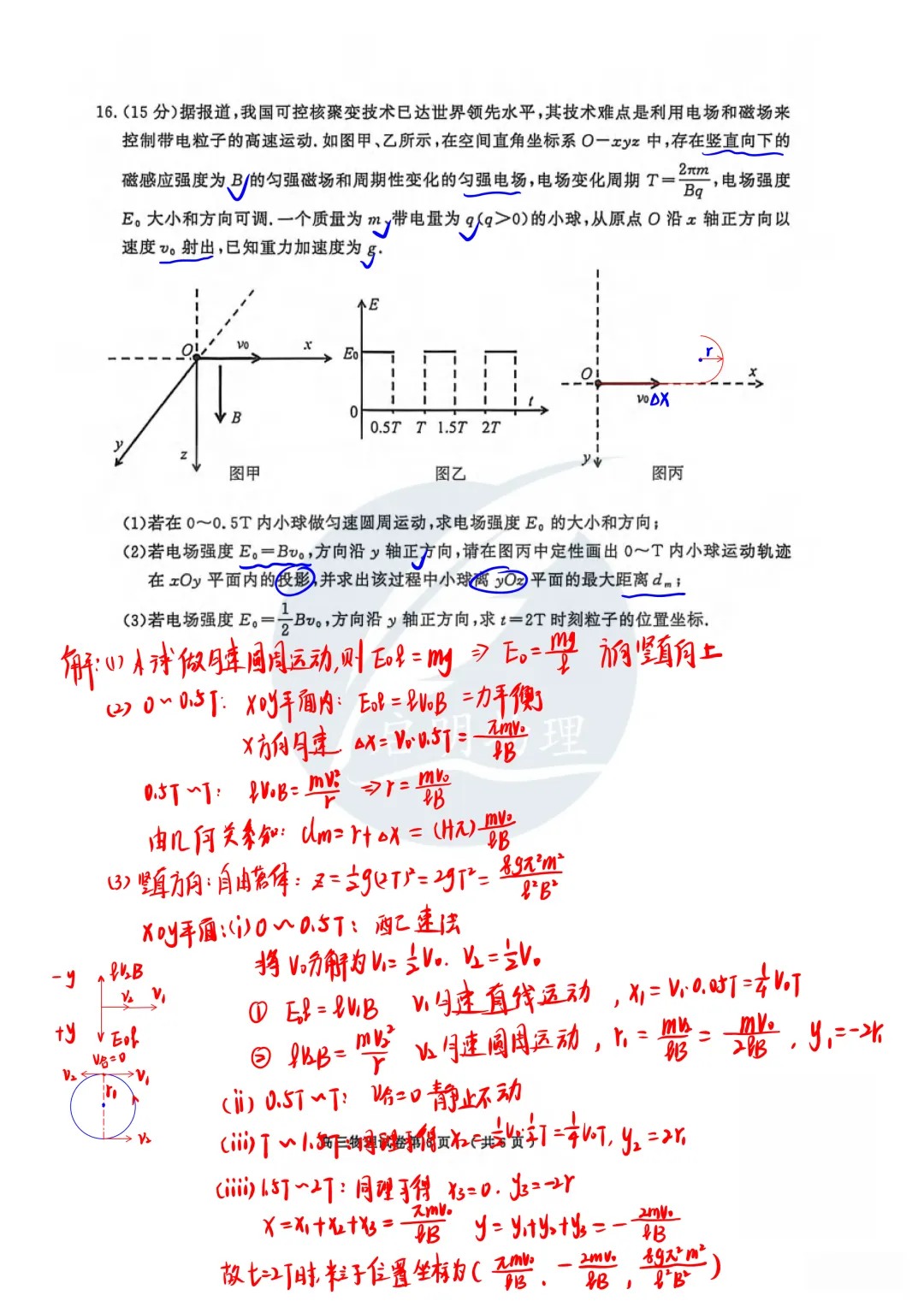 试卷难度适中偏上,选择题部分基础题与中档题为主,非选择题部分计算量较大,特别是第16题对数学工具的应用要求较高,具有良好的区分度,能够筛选出物理思维优秀的学生。